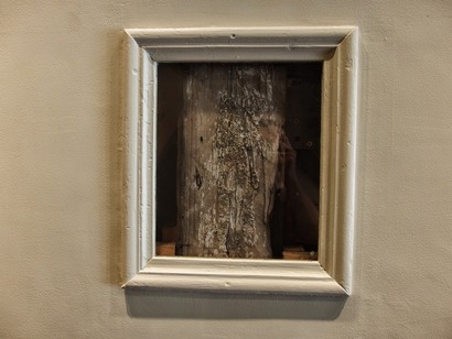 途中、こんなレトロな飾り。奥行きがある古い木が飾ってあります。この木がオシャレだと言えるのは、この場所にあるからです。絶対にマネはできません。