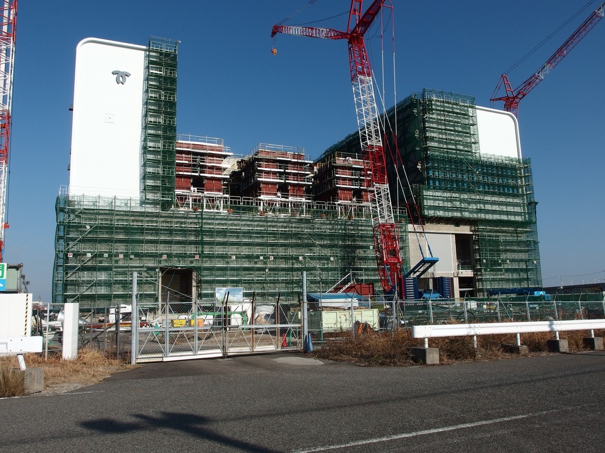 完成予想図はこんな感じです。さっき見た突起物(多分、炉)はすっぽり建物に覆われています。