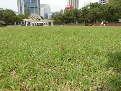 勝負は、次のルミナリエ。昨年実施した小さいスペースでの実験では入場者に踏まれて芝生が消失してしまいました。今回の芝生どうなるか!?