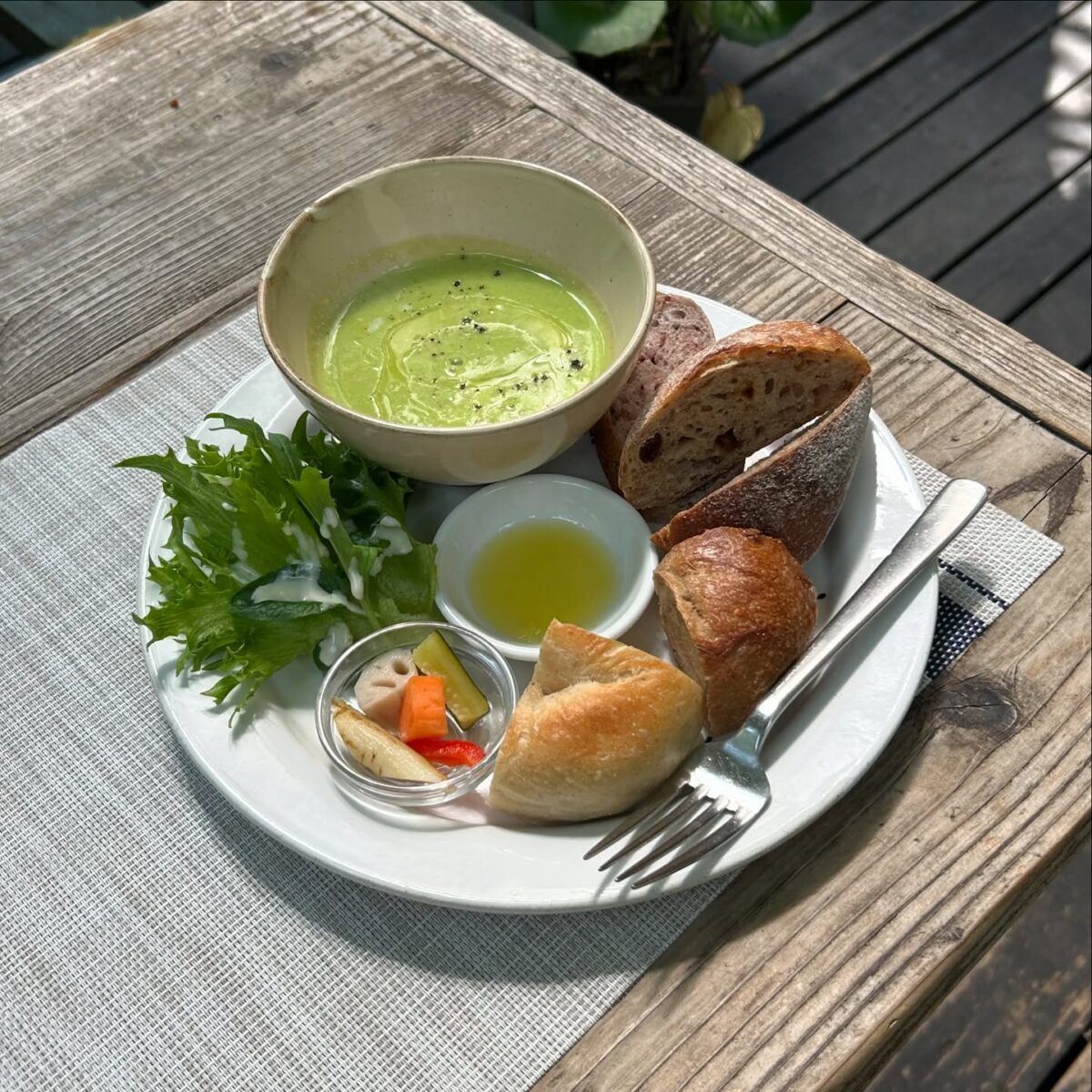ランチのプレートは、色んなパンを試せる「お任せパン5種」がセットに。同じプレートでも隣の人とは違う種類のパンが提供されたって口コミもあるので、行くたびに新しいパンとの出会いを楽しめそうです。