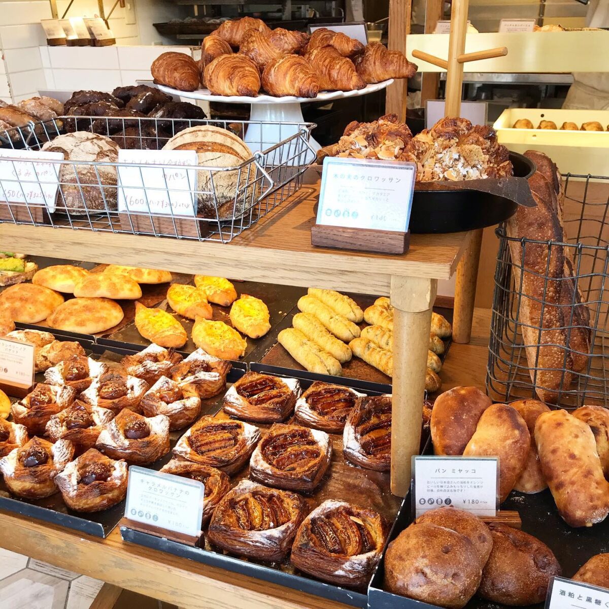お店は8:00オープンですが、角食が焼き上がるのは8:45~9:00ごろ。ほかにもフルーツデニッシュ10:00ごろ、ハード系惣菜パン11:00以降といった感じでオープン後に焼き上がるものもあるそうです。