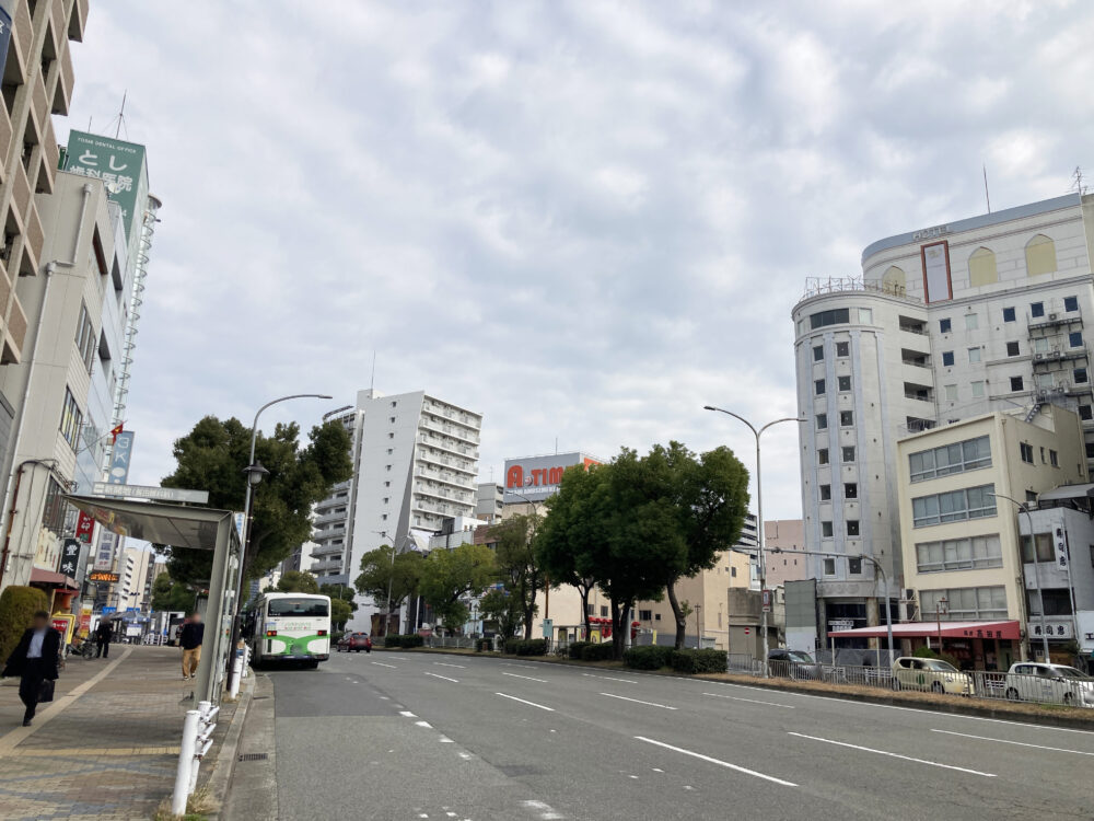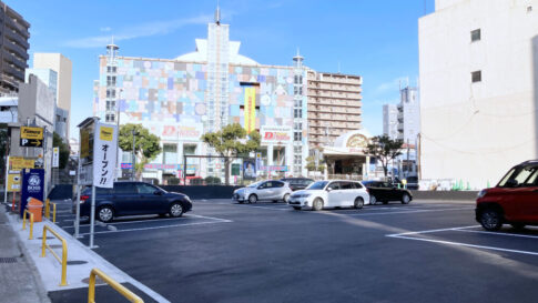 東を向くと、「新開地商店街」がある方向。隣は「「カプセル&サウナ Asahi」でしたが、解体され駐車場「タイムズ」になってます。