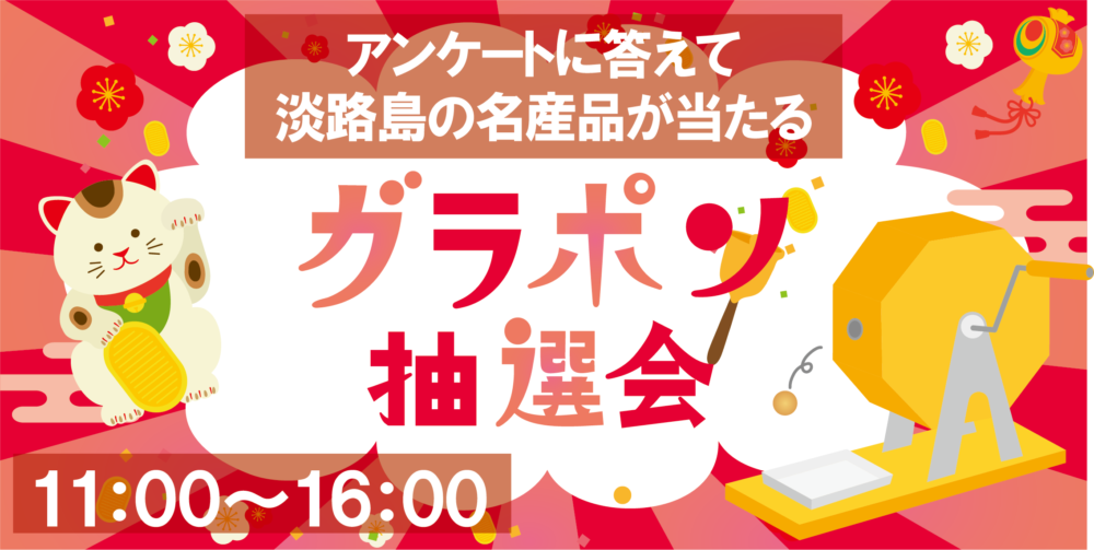 館内では、アンケートに答えると参加できる「ガラポン抽選会」も開催。淡路島の名産品が当たるそうです。