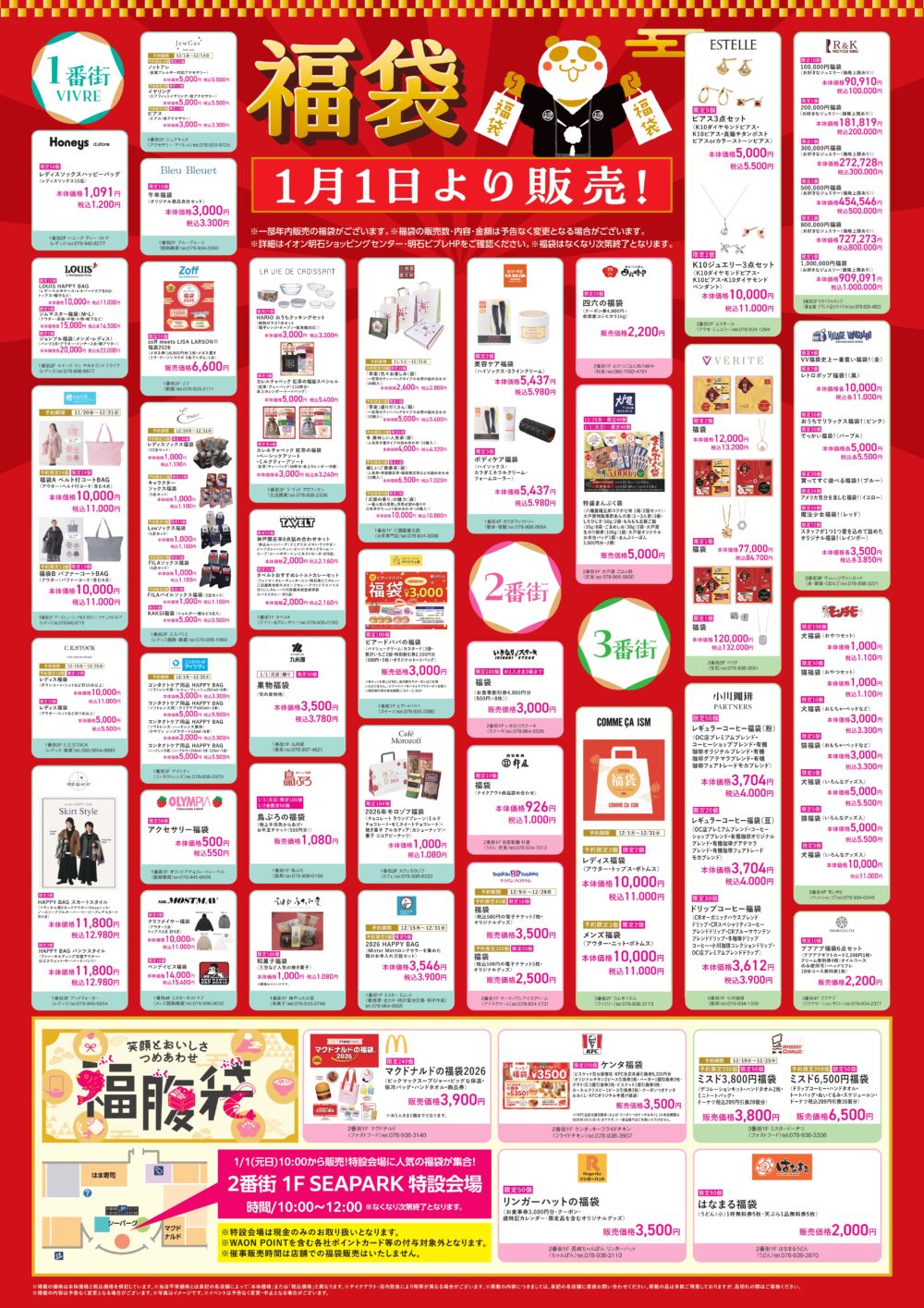 イオン明石ショッピングセンターの特設会場にて、マクドナルドやミスタードーナツなど人気の『福袋』が限定販売されます。