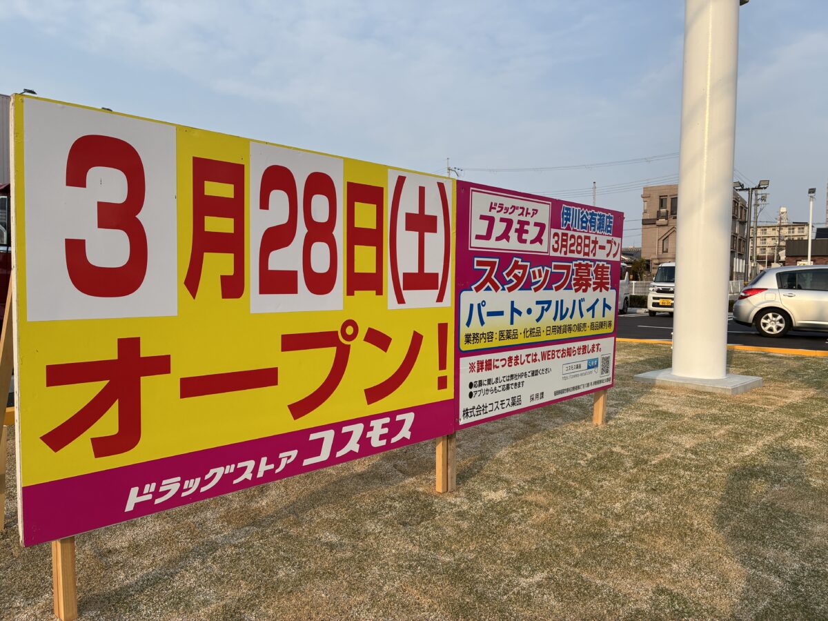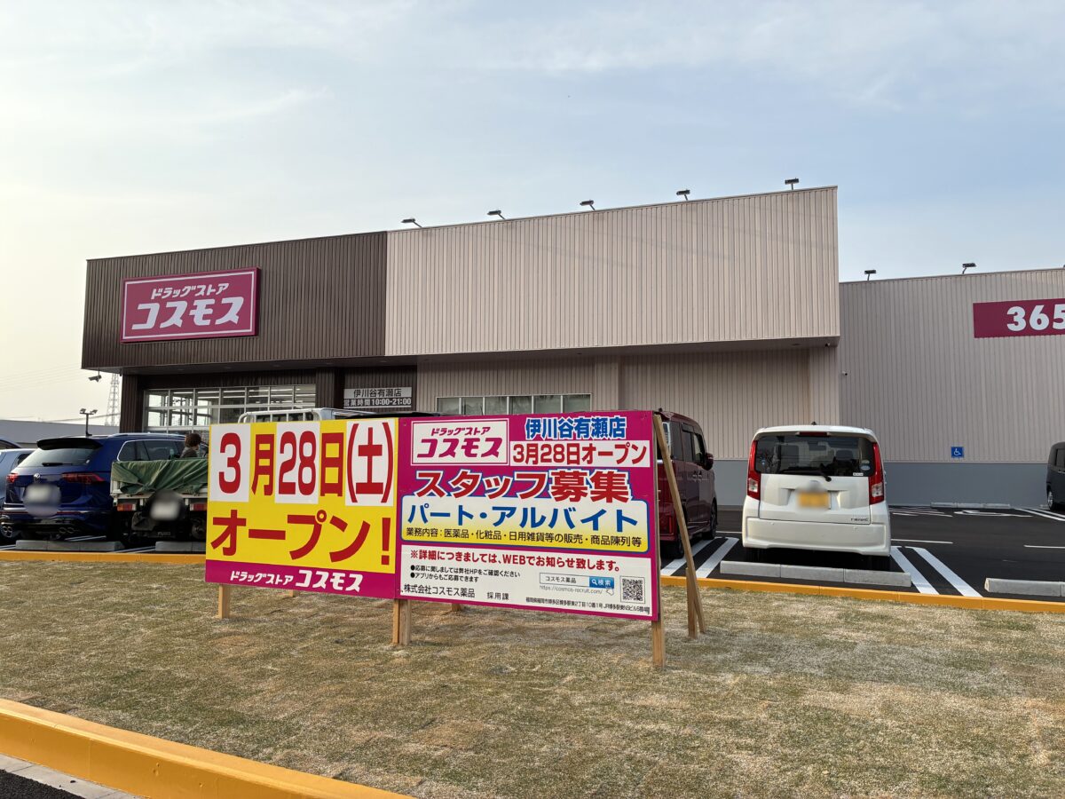 伊川谷有瀬に、ドラッグストア『コスモス』の新店舗ができてます。