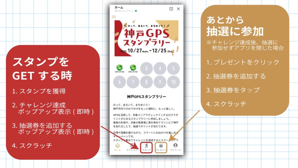同時期に「神戸GPSスタンプラリー」も実施しており、お買い物で使えるポイントが当たります。