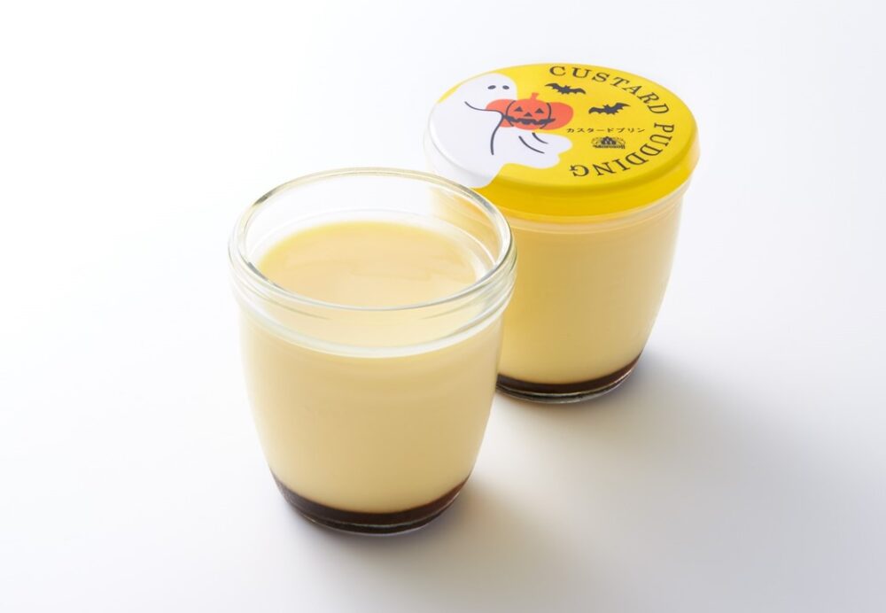 「カスタードプリン」のキャップには、おばけやコウモリ、かぼちゃなど、ハロウィンらしいイラストがプリントされてます。