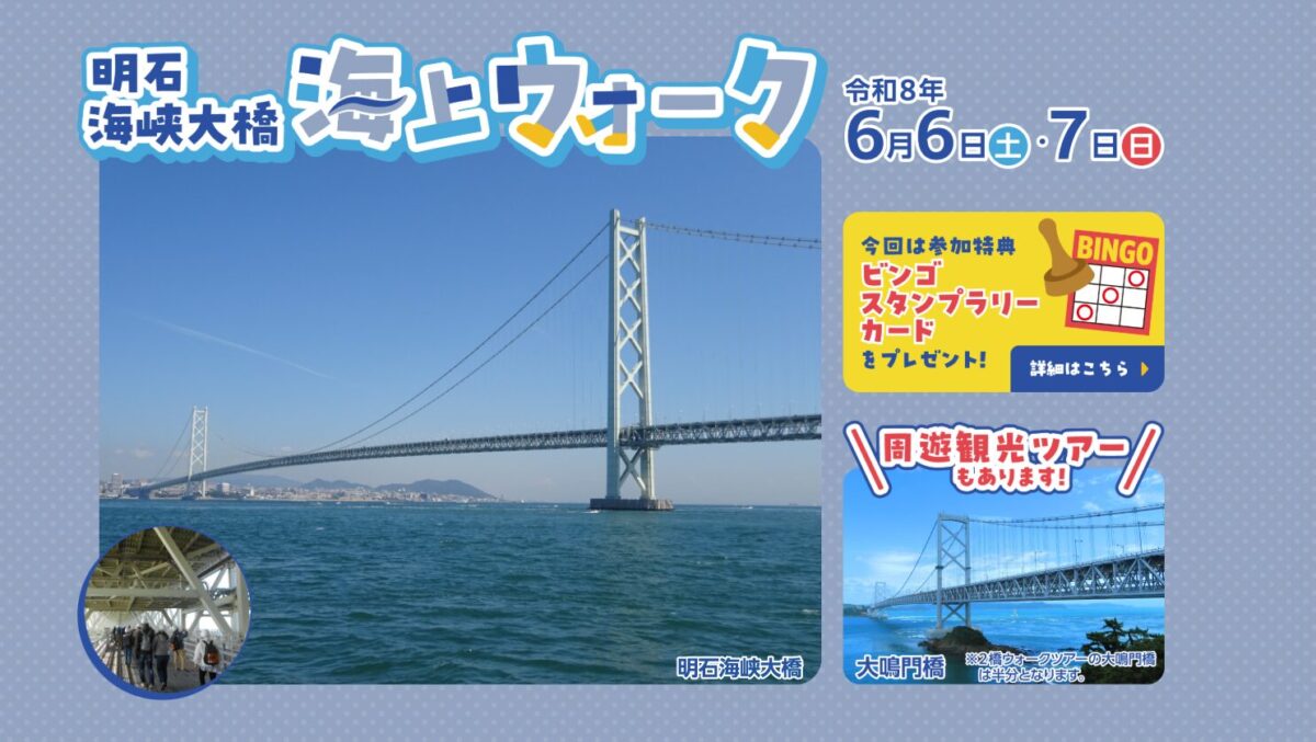 普段は入れない「明石海峡大橋」の管理路を、歩いて渡れる人気企画が今年も開催されます。