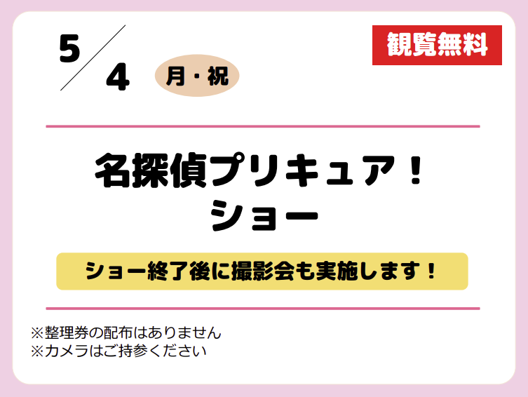 | 5/4(月・祝) | 名探偵プリキュア!ショー |