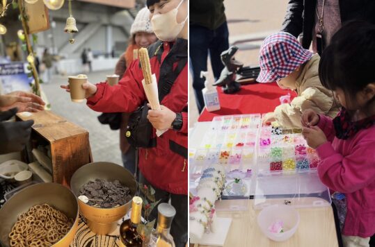 ファミリー向けのワークショップをはじめ、ハンドメイド雑貨、飲食ブースなどの店舗が大集合!アンケートにお答えいただいた100組様にマルシェで使える500円分の金券がプレゼントされます。