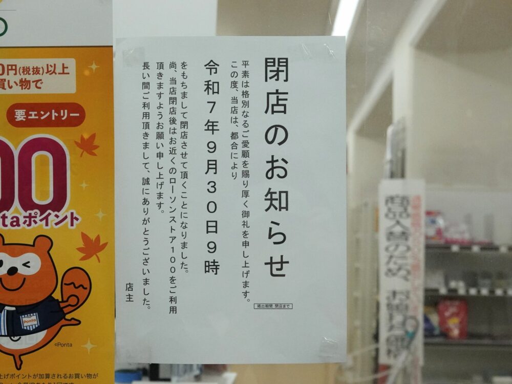 『ローソンストア100 東灘甲南町店』が閉店したのは、9月30日(火)。