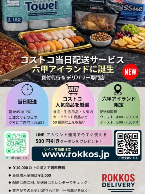 六甲アイランド限定のコストコ配送サービス『Rokkos Delivery(ロッコスデリバリー)』が登場しています。