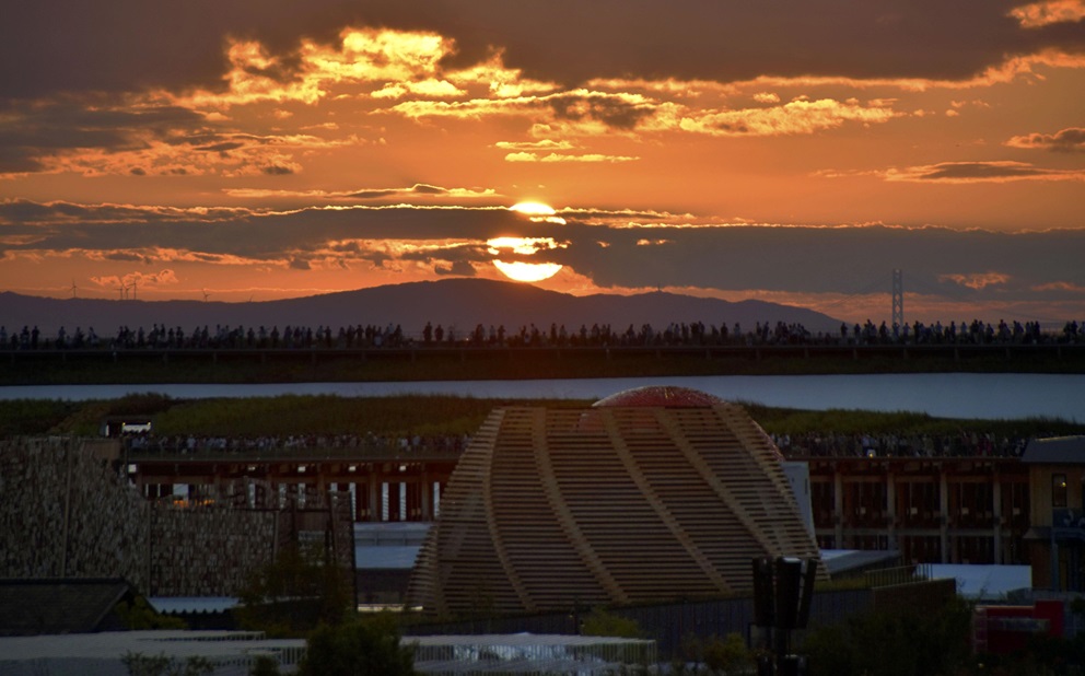 万博前からの時間、昼と夜で表情を変える会場の姿をたどります。