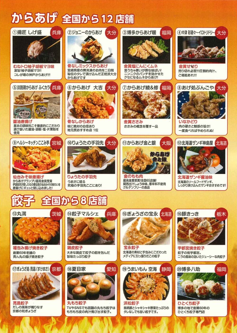 全国から12店舗の「からあげ」と、8店舗の「餃子」が出店し実演販売するほか、明石焼・明石原人バーガーなどのご当地グルメも出店します。
