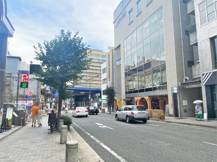 ななめ向かいには「らぁめんたろう」があり、JR高架・中央幹線を超えると「三宮ゼロゲート」や「ドンク 三宮本店」があるあたりです。