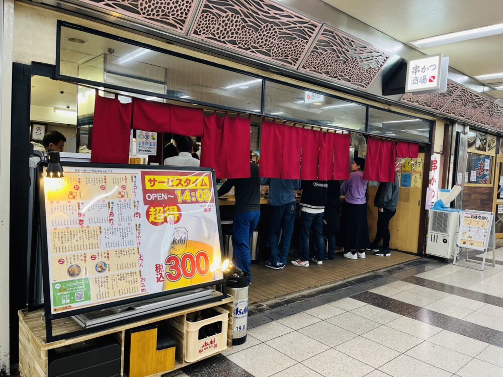 新開地の地下街にある「串かつ酒場」で創業30周年を記念して、いつもよりお得に「串かつ」や「生ビール」を楽しめるイベントが開催されます。