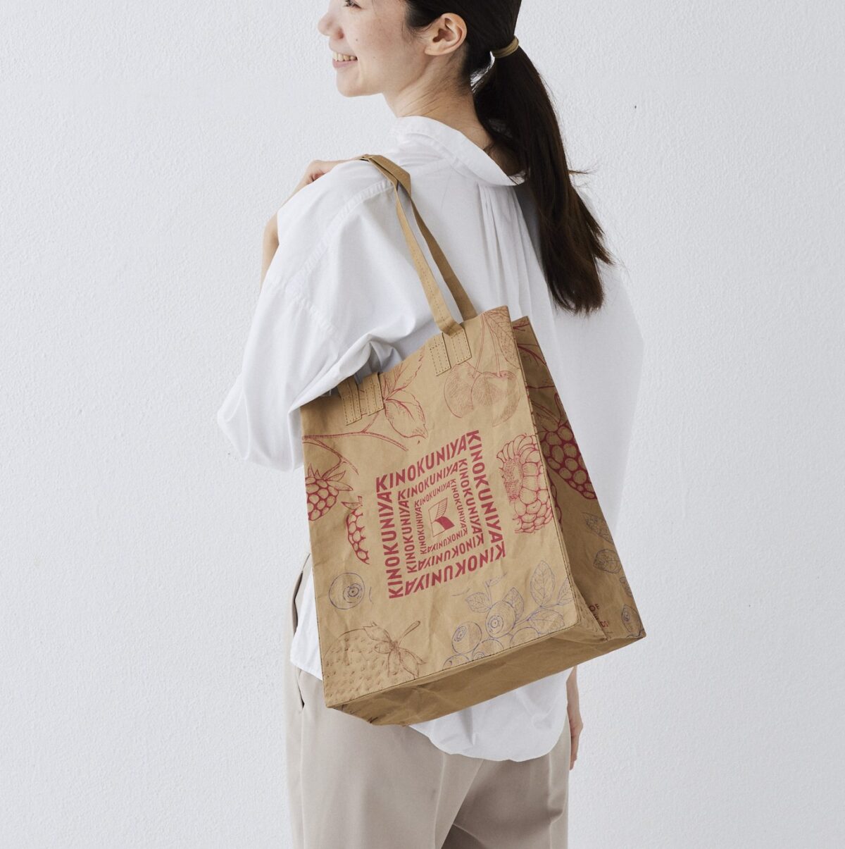 デザインは、紀ノ国屋らしい食のモチーフを取り入れたベジタブル柄とベリー柄の2種類。ナチュラルな素材感に映えるおしゃれなイラストが魅力です。