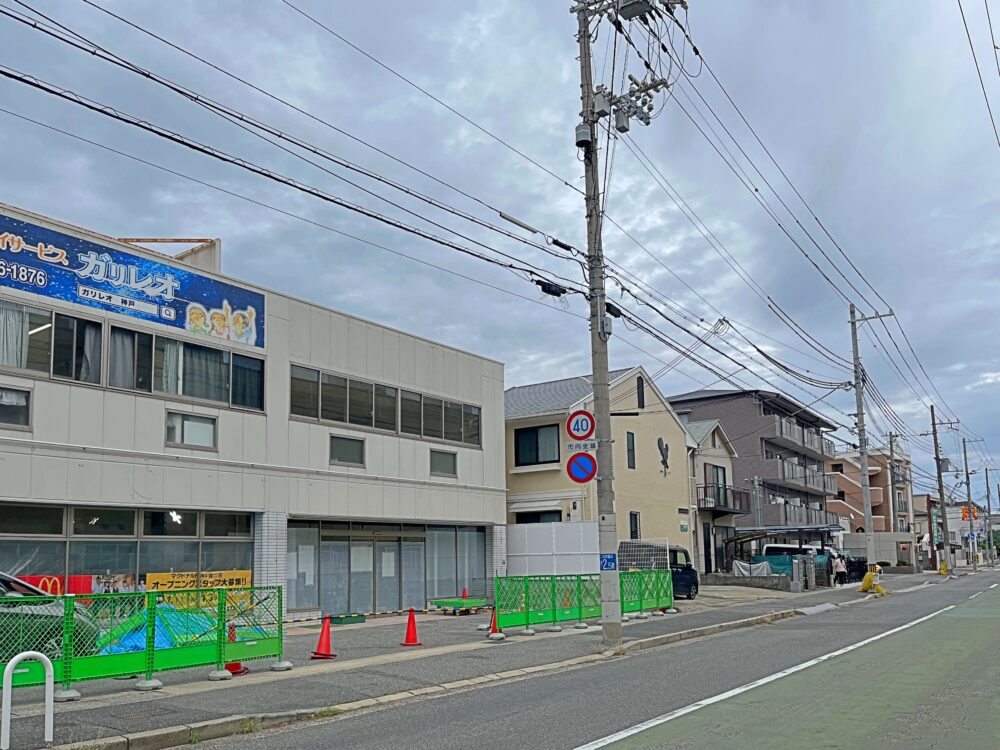 お店ができるのは、阪神深江駅から東へ5分ほど歩いたところ。以前は「ローソン神戸深江北町二丁目店」があった場所です。道路を挟んで南側には「東灘小学校」があり、東へ進むと「キリン堂東灘深江店」が見えるあたり。