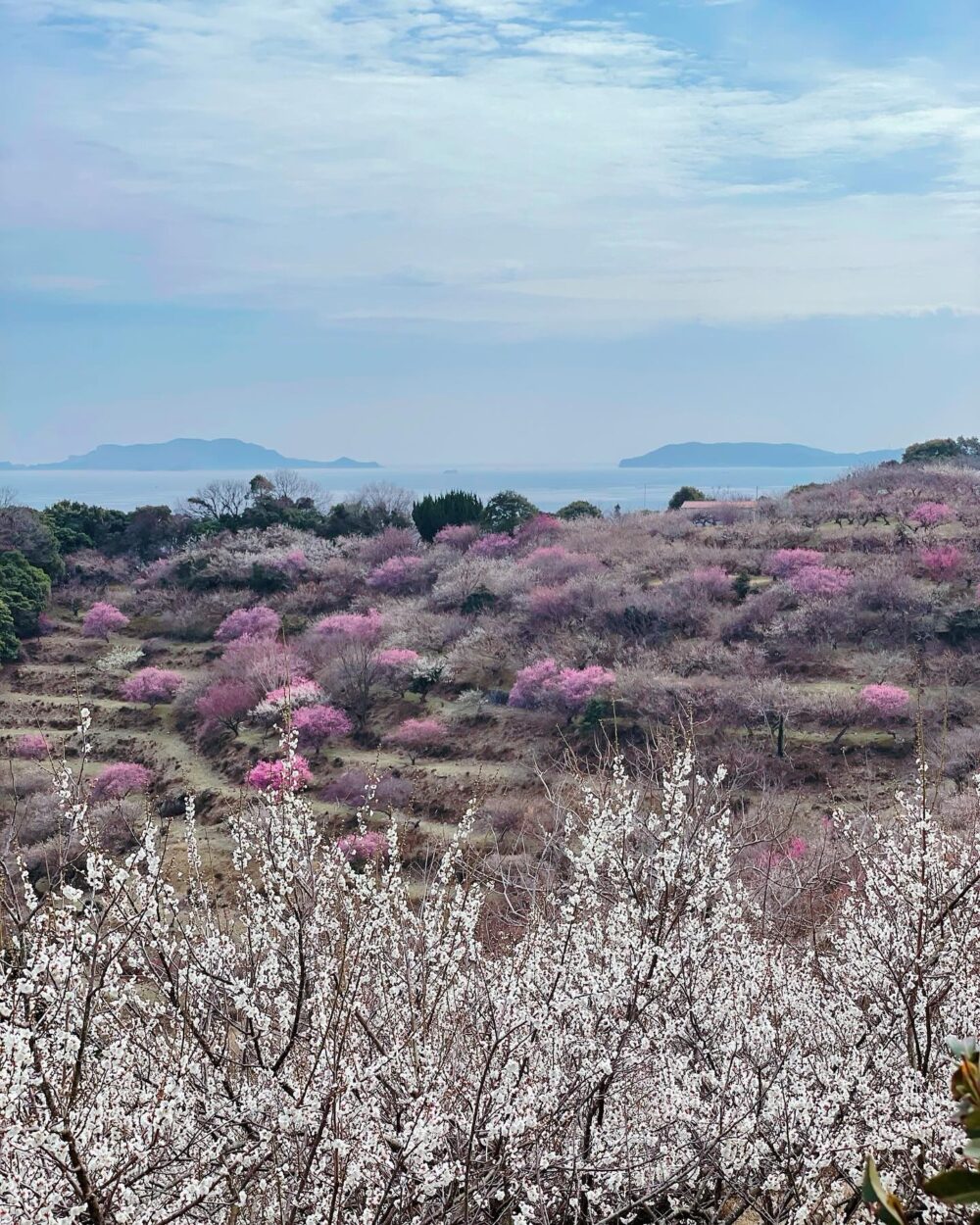 24ヘクタールの広大な綾部山広陵に広がる「海の見える梅林」として、西日本一とも言われているんだそう。