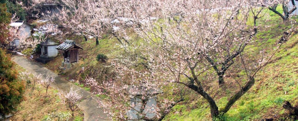 この周辺は古くから梅の名所として知られてきましたが、第二次世界大戦中の食糧不足から梅林が芋畑に変わり、梅林がなくなってしまったことがありました。
