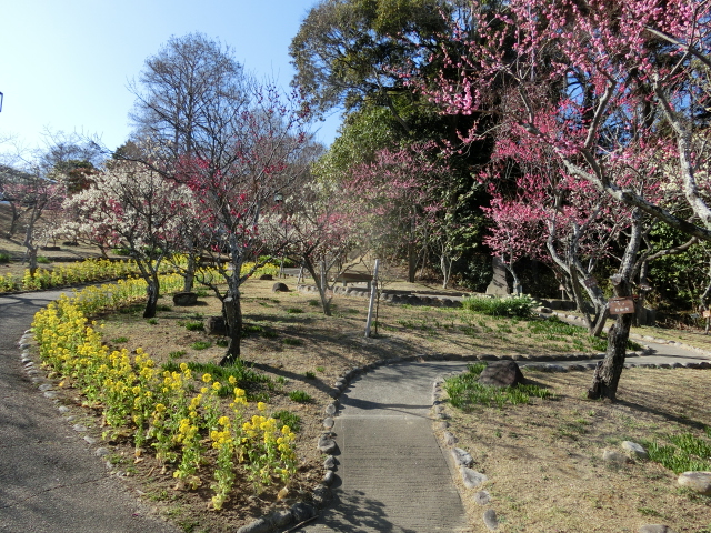 『須磨離宮公園』の梅園は、梅だけでなく、足元には菜の花・ニホンズイセンなども一緒に咲くのが特徴。