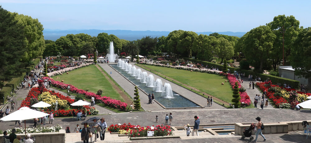 『神戸市立須磨離宮公園』は、山陽電鉄 須磨寺駅や月見山駅から歩いて10分ほどのところにある、様々なお花が楽しめる場所です。