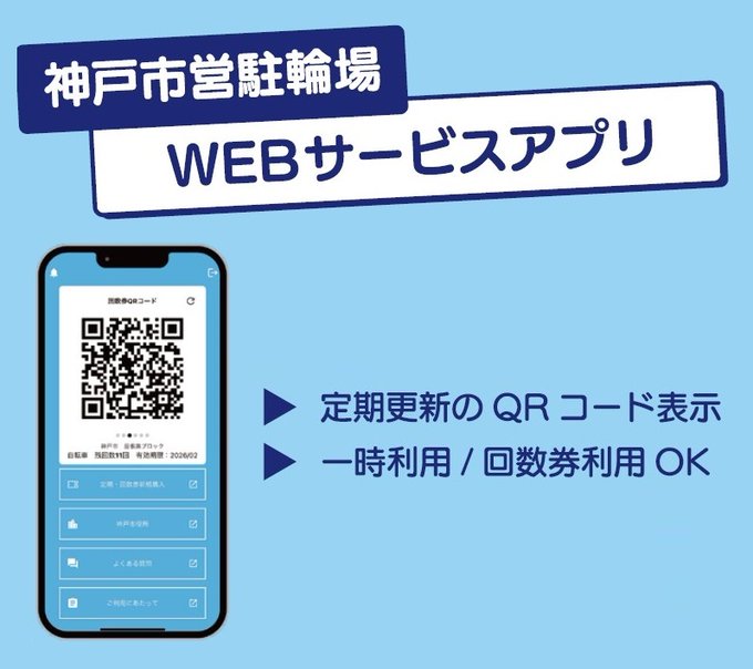 神戸市営駐輪場のWEBサービスが、2025年10月1日(水)から『アプリ』でも利用できるようになってます。