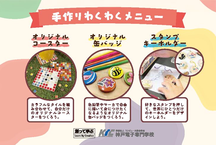 神戸電子専門学校の学生と一緒に、世界に一つだけのオリジナルアイテムを製作できるイベントです。