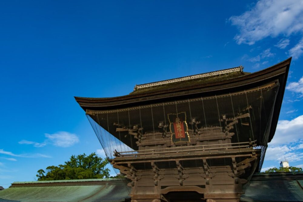 必勝祈願でおなじみ、日本三大八幡宮のひとつである「筥崎宮」を巡ります。創建は平安時代とされ、厄除けや勝運のご利益があります。国の重要文化財である楼門をくぐり、美しい朱塗りの本殿・拝殿を参拝できます。