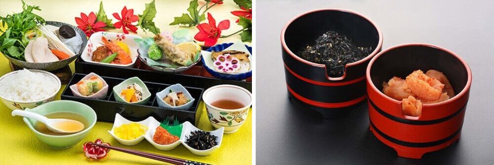昼食では福岡名物、明太子が食べ放題。ご飯もおかわり自由です。