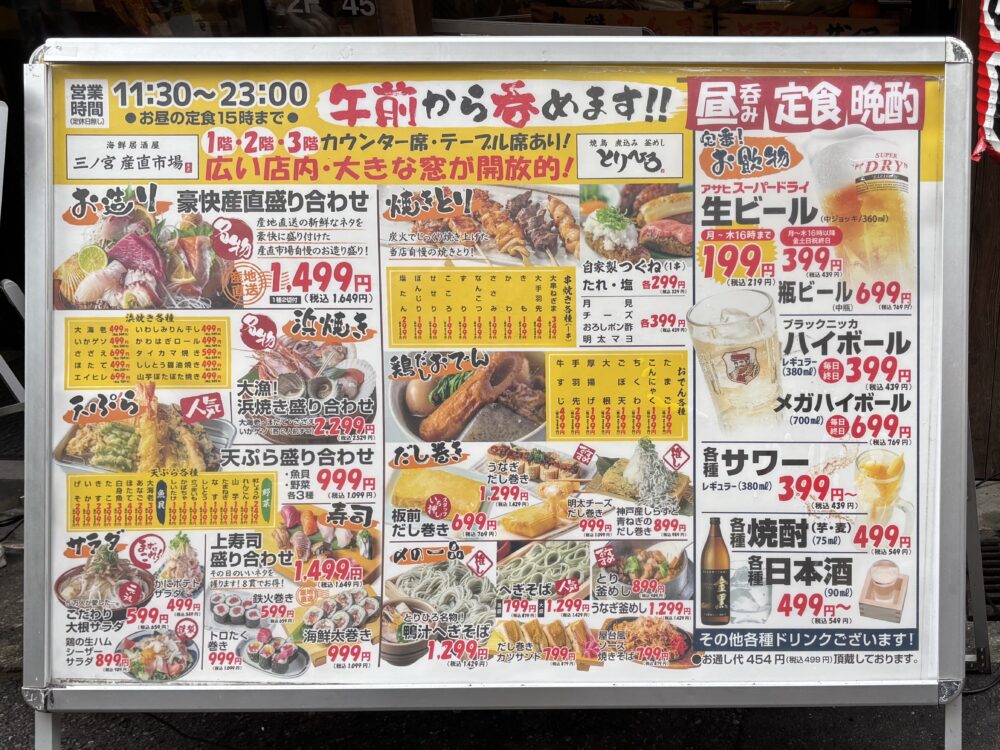 今回は、サンキタにある、『三ノ宮産直市場・大串焼鳥とりひろ 三宮サンキタ店』に行ってみます。