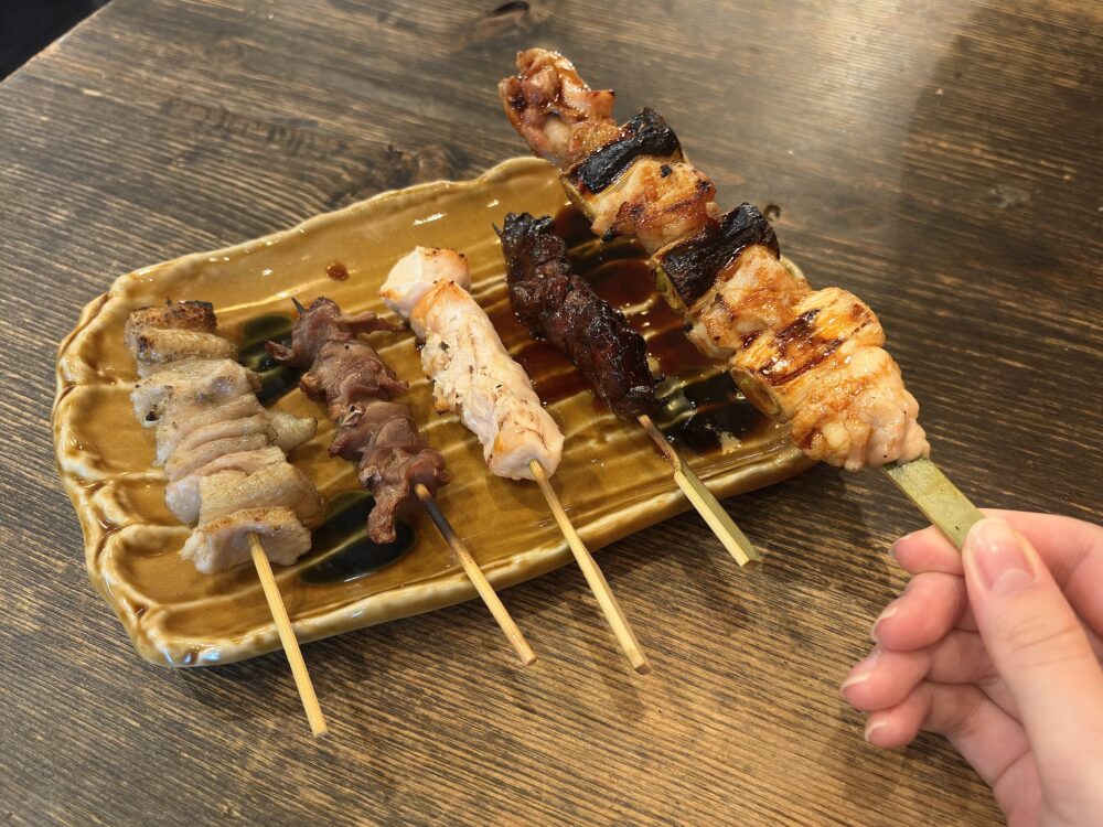おおぶりの焼鳥は、たれの味がしっかりしみ込んでいて、5本セットでも1000円以下と、こちらもおすすめな一品です。