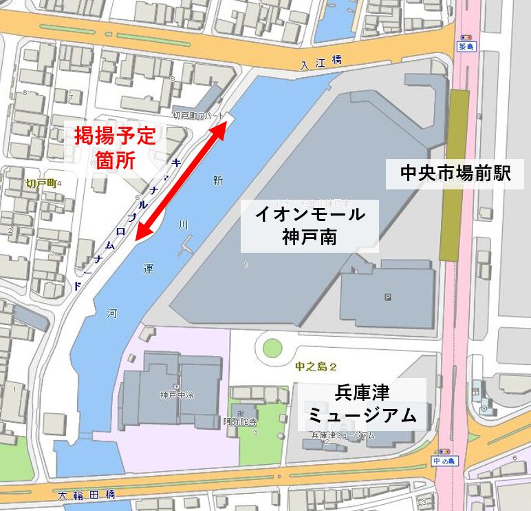 イオンモール神戸南の西側の兵庫運河で、こいのぼりの掲揚が実施されます。