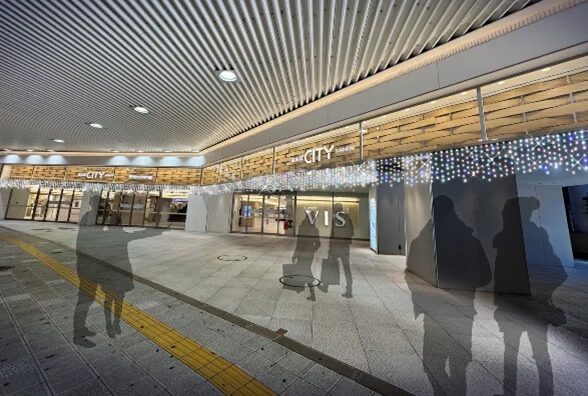 メインエントランスではカラフルなイルミネーションがお出迎え。買い物も楽しめますね。