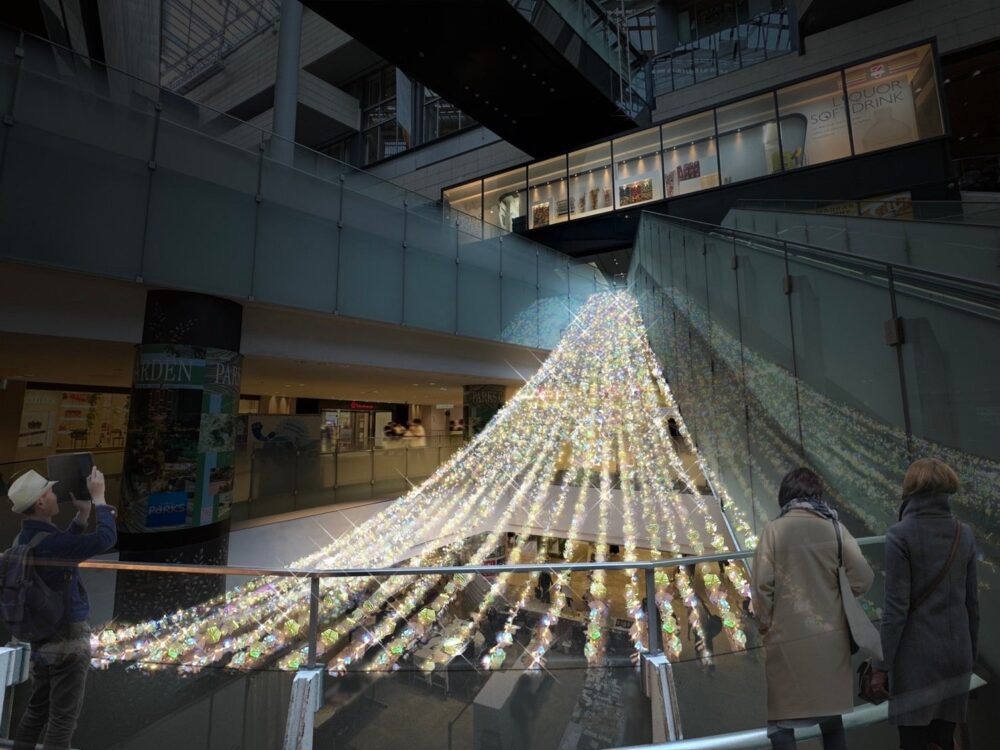 1階から見上げると、まるで巨大なクリスマスツリーがそびえ立っているかのような光景が広がります。