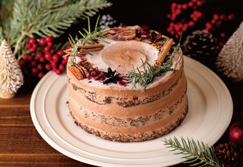 しっとりチョコレートスポンジに、自家製いちごジャムの優しい甘酸っぱさが特長のクリスマスケーキです。ナッツとスパイスも香るそう。5寸サイズで、お値段は2,700円です。