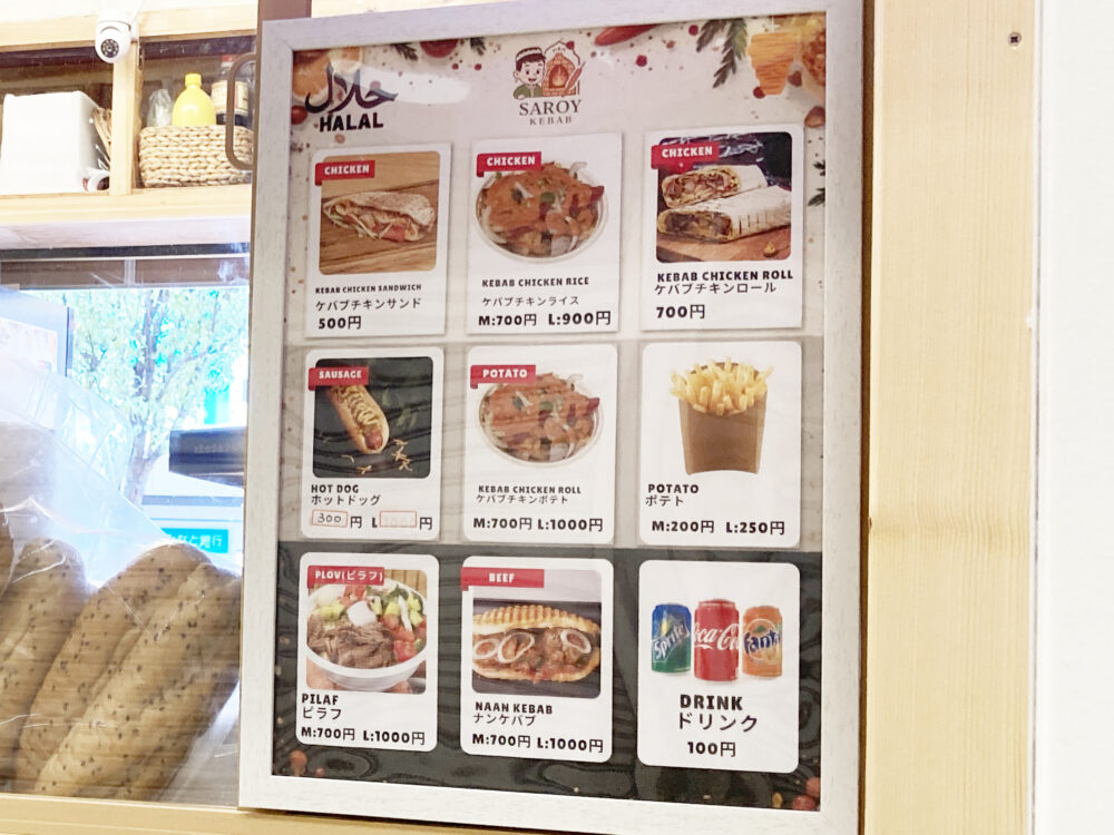 テイクアウトで食べやすい「ケバブチキン」は500円、具材のたくさんのったピラフが700円~という価格設定。