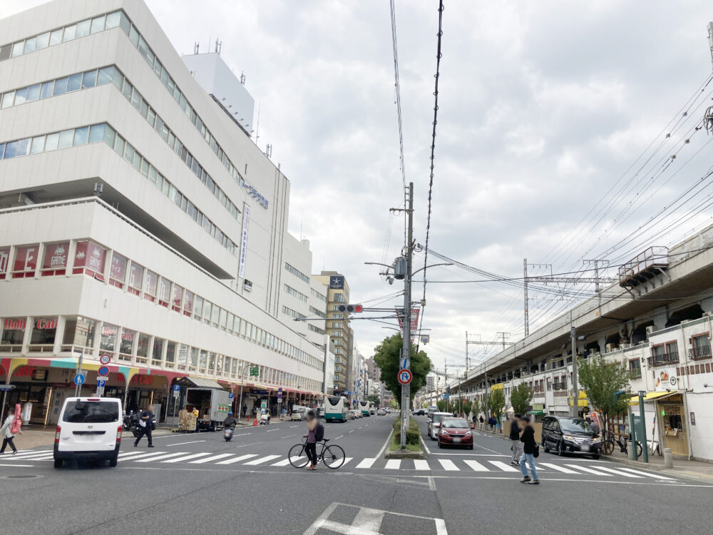 中央幹線に面していて、信号を渡るとセンタープラザ西館の「ホリーズカフェ」があるところ。