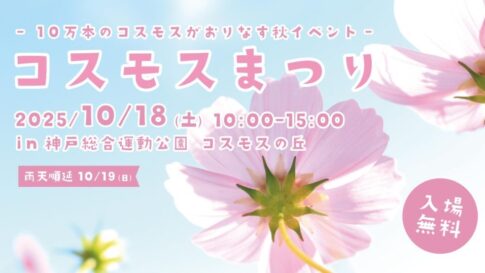 神戸総合運動公園で、約4,000㎡の段々畑の一面に咲く約10万本の「コスモス」が楽しめるイベントが開催されます。