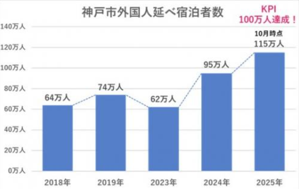 2025年の神戸に泊まった「外国人」が、目標の「100万人」を超えてたみたい