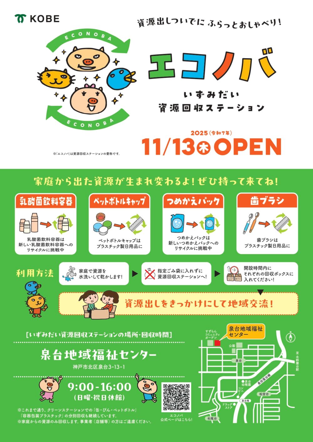プラスチックのリサイクルと、地域交流の場づくりを目的とした、『エコノバ』(資源回収ステーション)が北区に2か所オープンします。