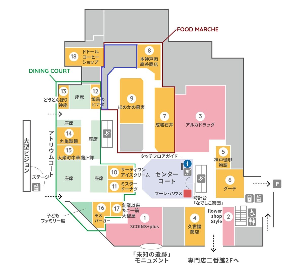 お店があったのは、プレンティ「専門店一番館」の1階。上の画像の左上あたり、青色の枠線で囲んでいるところです。