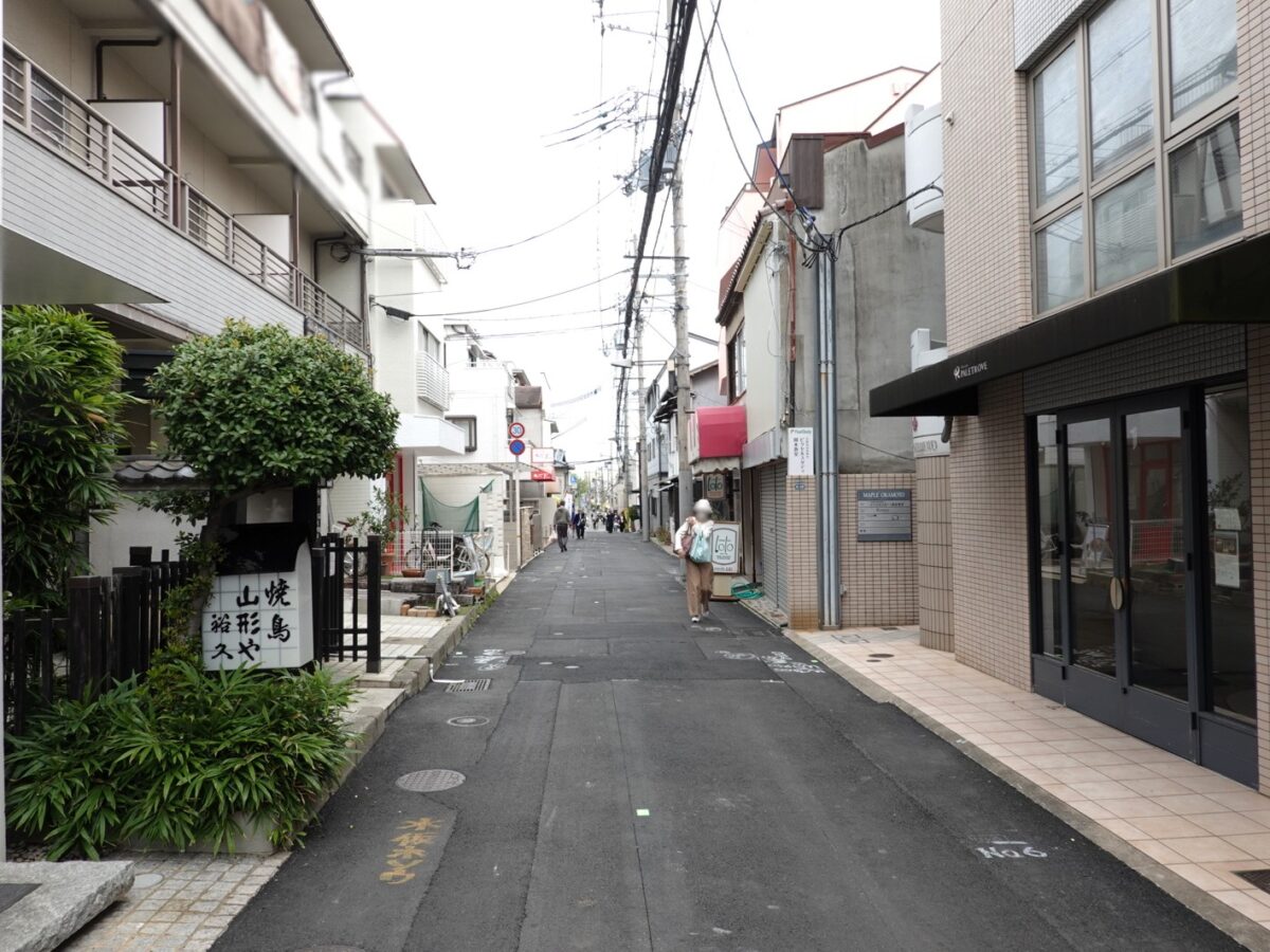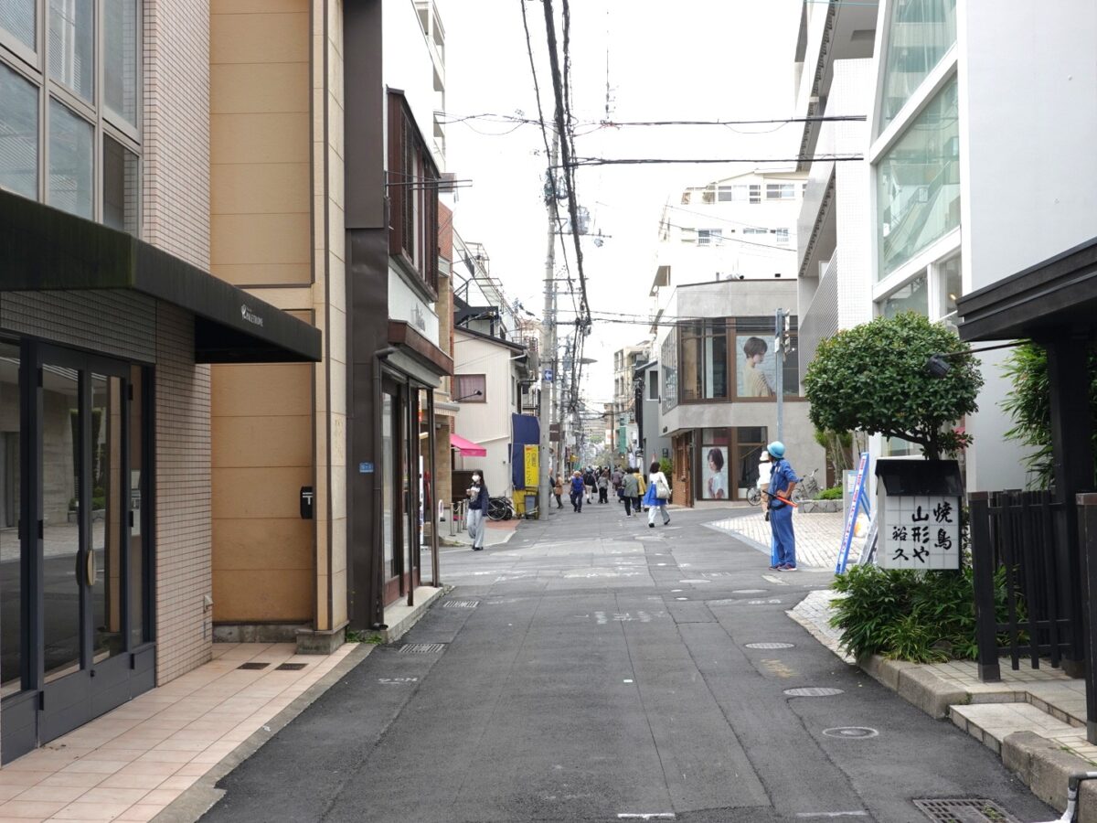 反対を向くとこんな感じ。向かい側には「焼鳥 山形や 裕久」があり、少し進むとジェラート屋さん「Gelateria e gastronomia Che Bonta」、さらに4分ほど東へ歩くと「ティールーム マナーハウス モトヤマ」などもあるあたり。