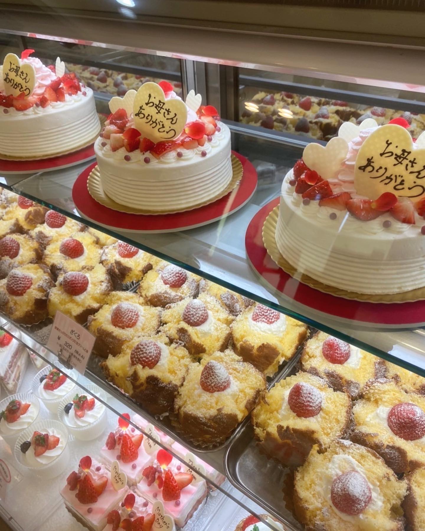 ショーケースには、毎日ひとつひとつ丁寧に手作りされる生ケーキがずらり。