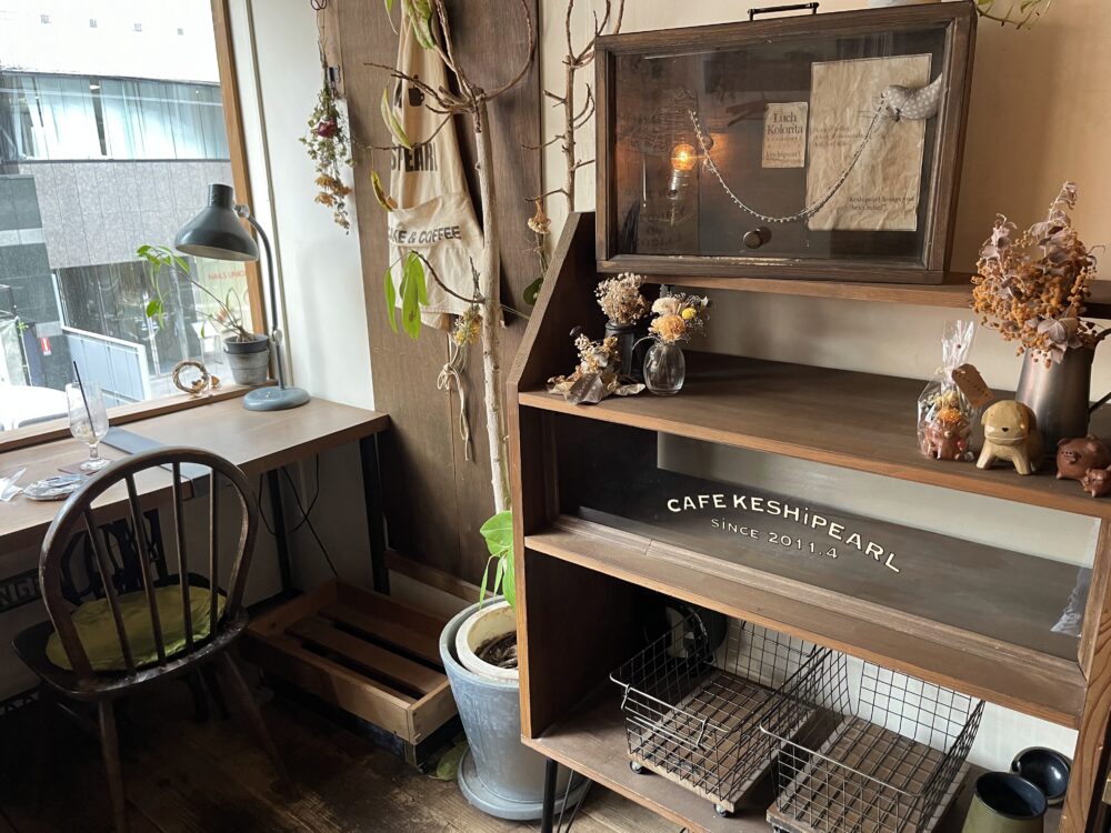 各線 三宮駅から徒歩5分のところのビルの2階にある『カフェ ケシパール』。店名は、希少性の高い天然無核真珠の石言葉である「ひとときの休息」に由来しているそう。