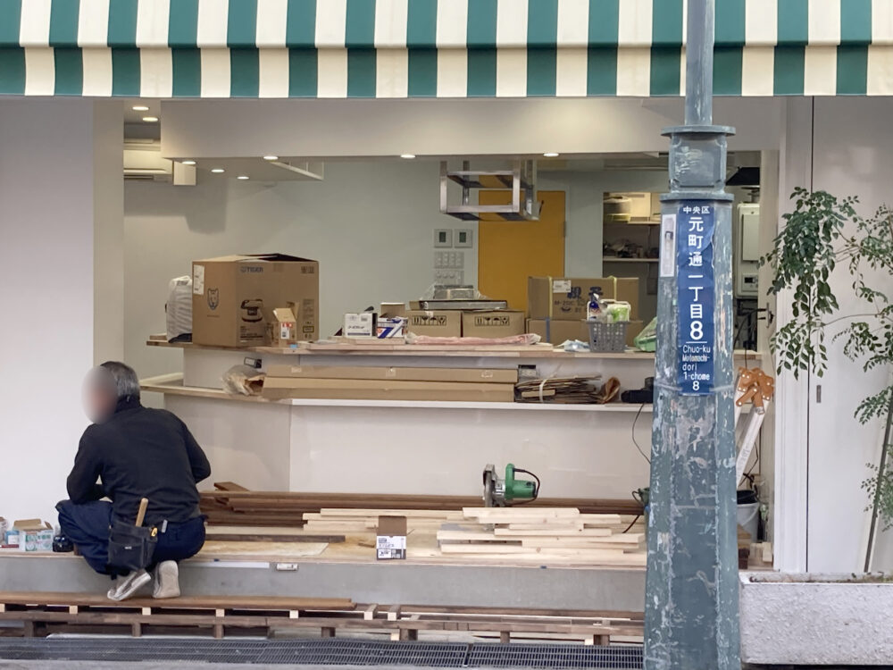 店内には、L字のカウンターが作られています。ここにいろんな商品が並ぶことになるのか、イートインなんかもできるといいですね。