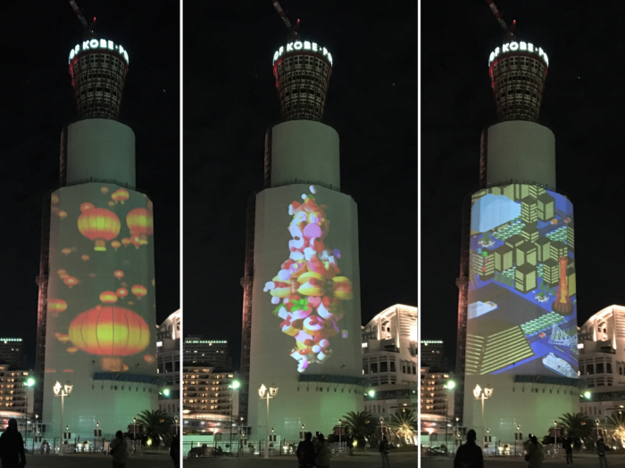 工事中のポートタワーで始まったプロジェクションマッピング。あっという間の7分間、いろんなところからの見え方をチェックしてきました。