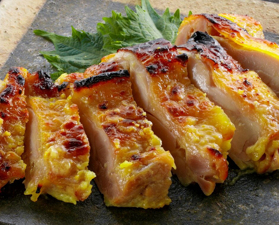 2種類の西京味噌と塩麹を配合した自社オリジナルたれに漬け込むことで、分厚いもも肉に旨みを閉じ込め、香ばしさを引き出しました。上品な甘みの味噌だれと、しっとり柔らかなお肉がご飯によく合う一品です。おかずとしてはもちろん、「若鶏の西京味噌焼き」を使用したお弁当も用意されています。
