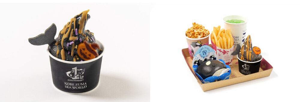 ハロウィンメニューとして、チョコレート味の黒いソフトクリームにキャラメルソースをかけ、シャチの尾びれとジャック・オー・ランタンで飾りつけたかわいい「ハロウィンソフト」が登場。ポップコーンやしゃちまん、フライドポテト、ドリンクがセットになった「ハロウィン限定 ポテトフライ付きおしゃち見セット」もあります。