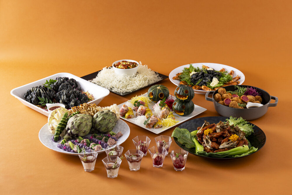 具材に自然な甘みを持つビーツを使用した「ドラキュラの大好き真っ赤なコロッケ」、海老に黒い衣を纏わせたまるで悪魔のしっぽのような黒いエビマヨの「悪魔noしっぽ」のほか、くり抜いたかぼちゃがあしらわれた「秋サケとそばの実とキヌア ハロウィン仕立て」など、見た目にも楽しめるハロウィンメニューが揃っています。